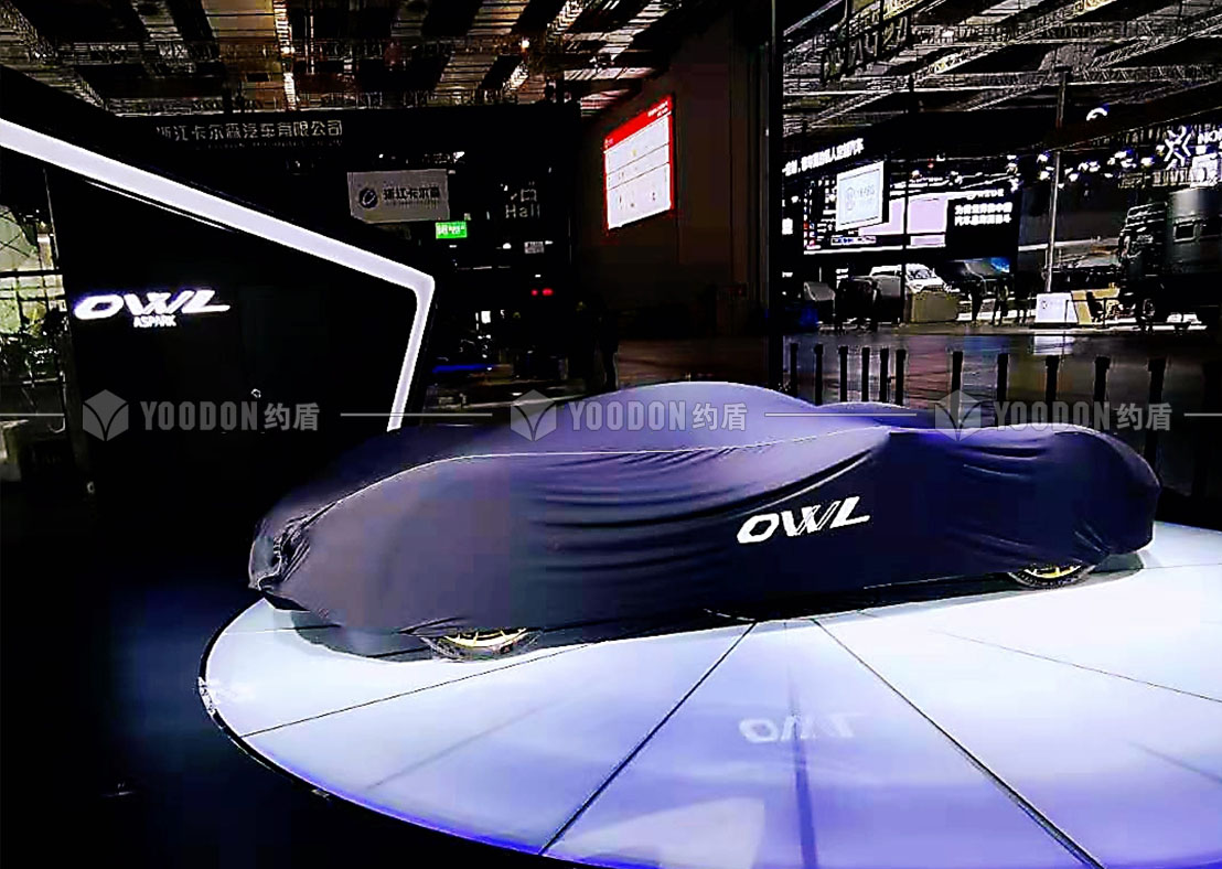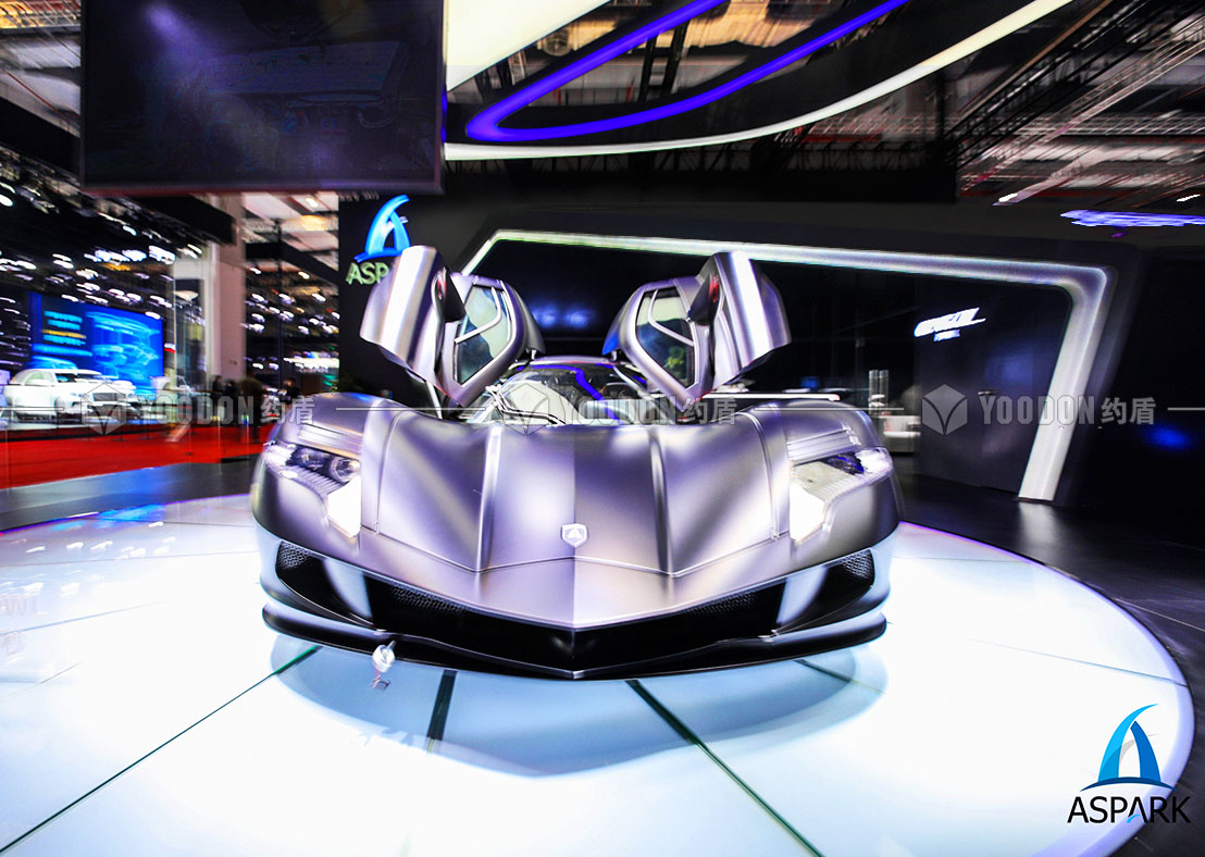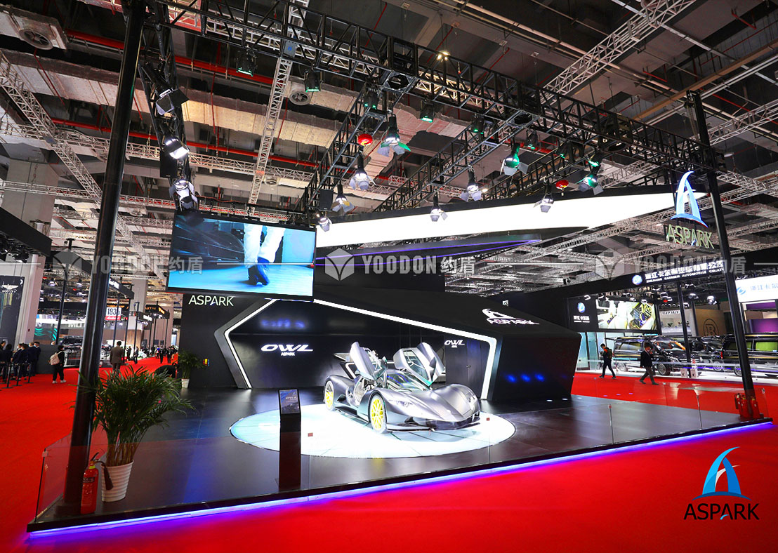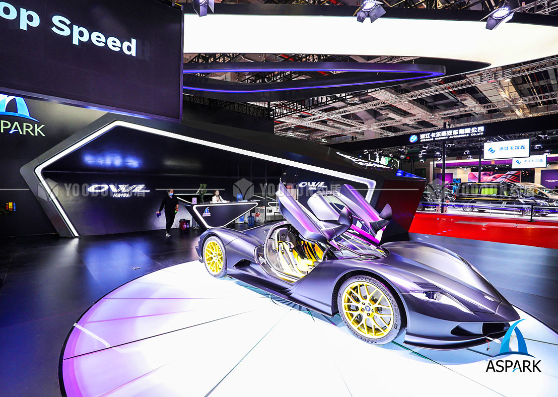 展臺(tái)設(shè)計(jì)思路皆尊崇速度感與獨(dú)特感,整體造型設(shè)計(jì)跳出常規(guī)邏輯,使人耳目一新,傾斜的異形吊頂仿佛是受到跑車高速行進(jìn)的風(fēng)速影響,在靜止的空間內(nèi)帶來極致的動(dòng)態(tài)感受,與展品的特性、造型等達(dá)到各方面的契合。