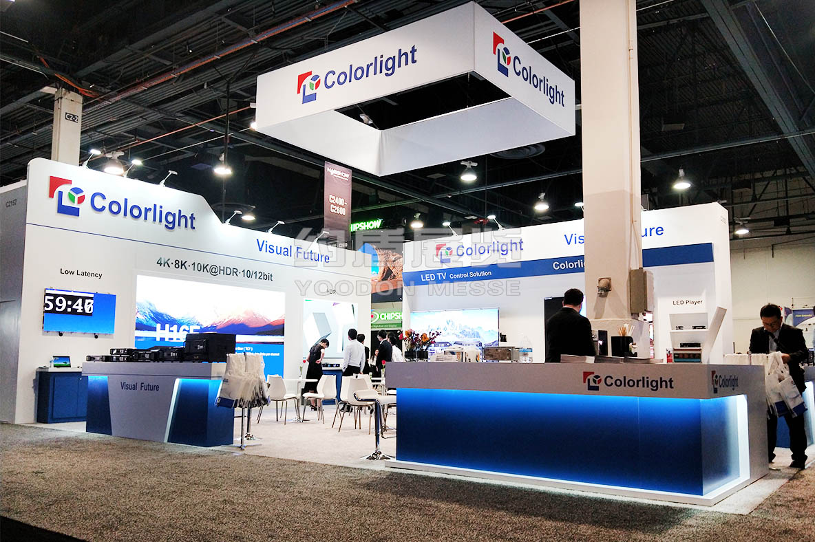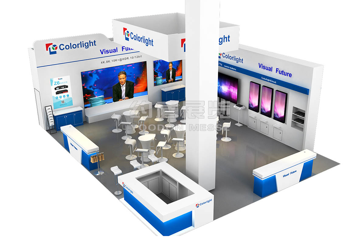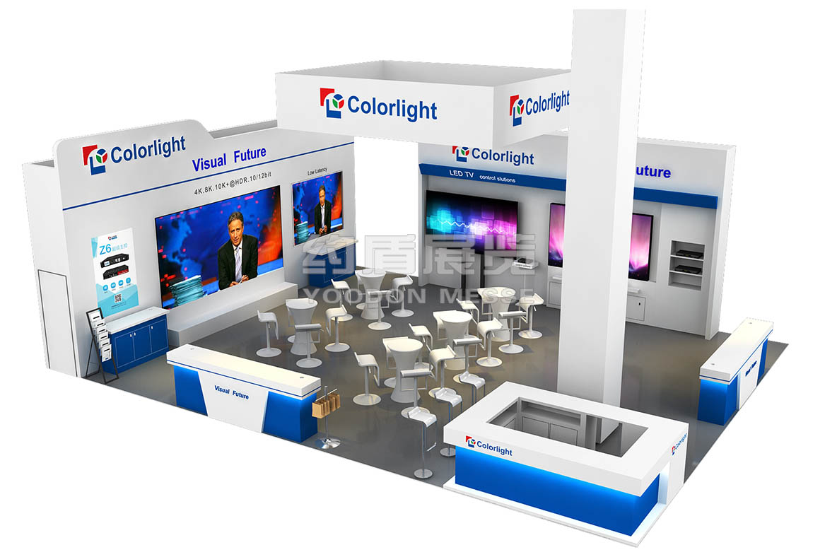 卡萊特展會設計搭建亮點在于幾個電視演播廳,前方擺放的桌椅方便大家直觀的體驗??ㄈR特的產品被普遍應用于世界各地的重大賽事活動,商業廣告,演藝舞臺,電視演播廳,商業中心等場合;卡萊特的服務網絡遍及全球,擁有深圳、北京、西安、上海、成都、美國、荷蘭7家公司和分布于全球的50個服務網絡,數百名技術服務工程師為世界各地的客戶提供專業高效的技術服務。