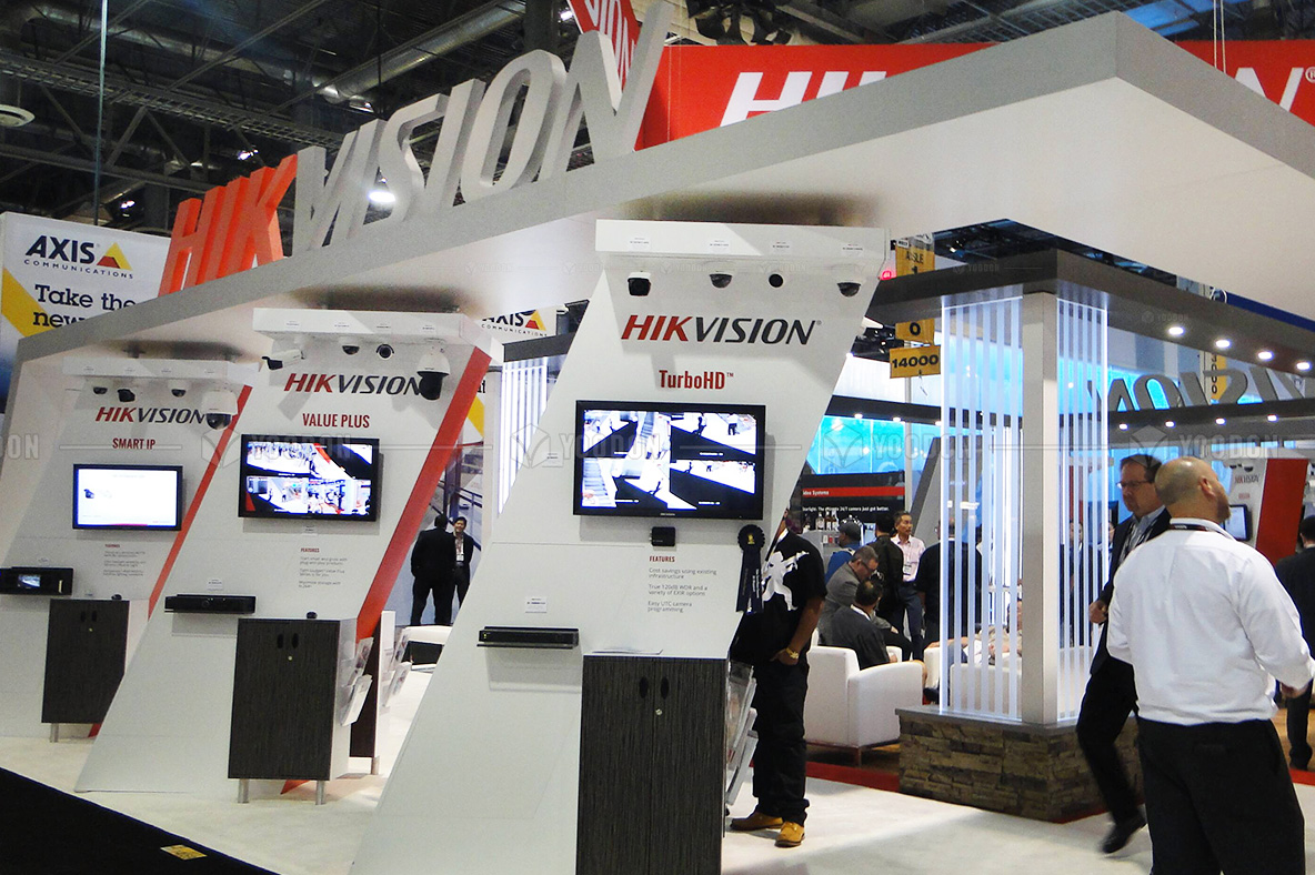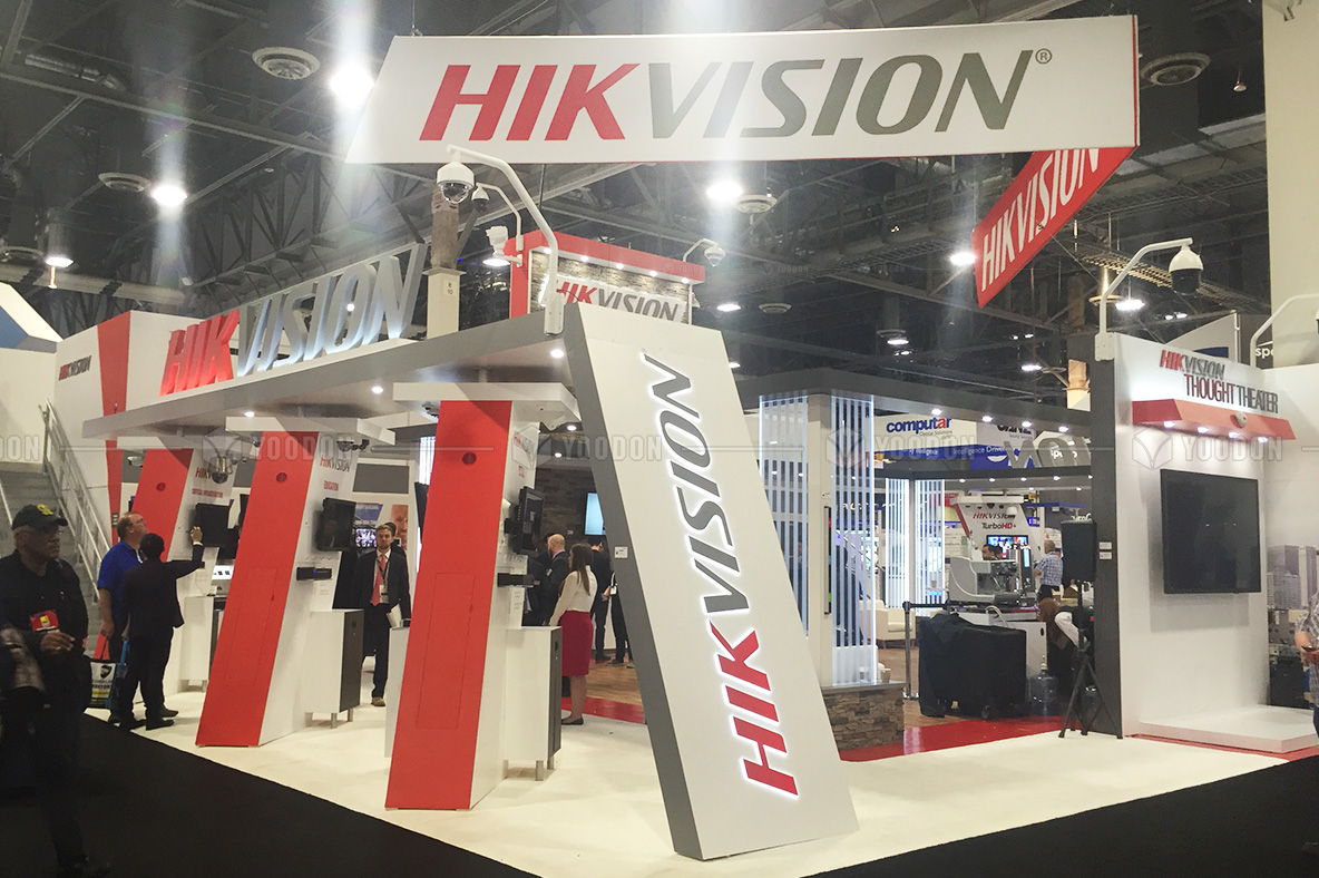 全球展臺解決方案在本次海康威視HIKVISION的美國展會搭建案中的設計突破點為以下: