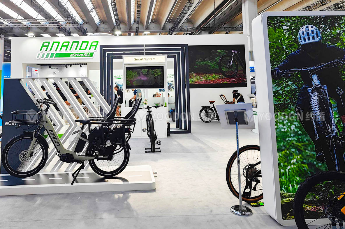 2023歐洲自行車展覽會(EUROBIKE)于2023年6月21日至6月25日在德國法蘭克福會展中心舉辦,促進了自行車運動在全球的發展。約盾展覽助力安乃達在歐洲展會搭建中宣傳企業品牌未來發展,以精致的造型設計,塑造出一個充滿活力的綠色展位,贏得客戶和參展觀眾盛贊。