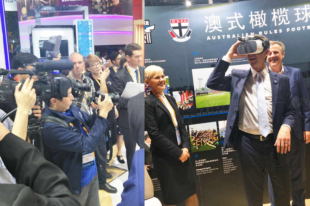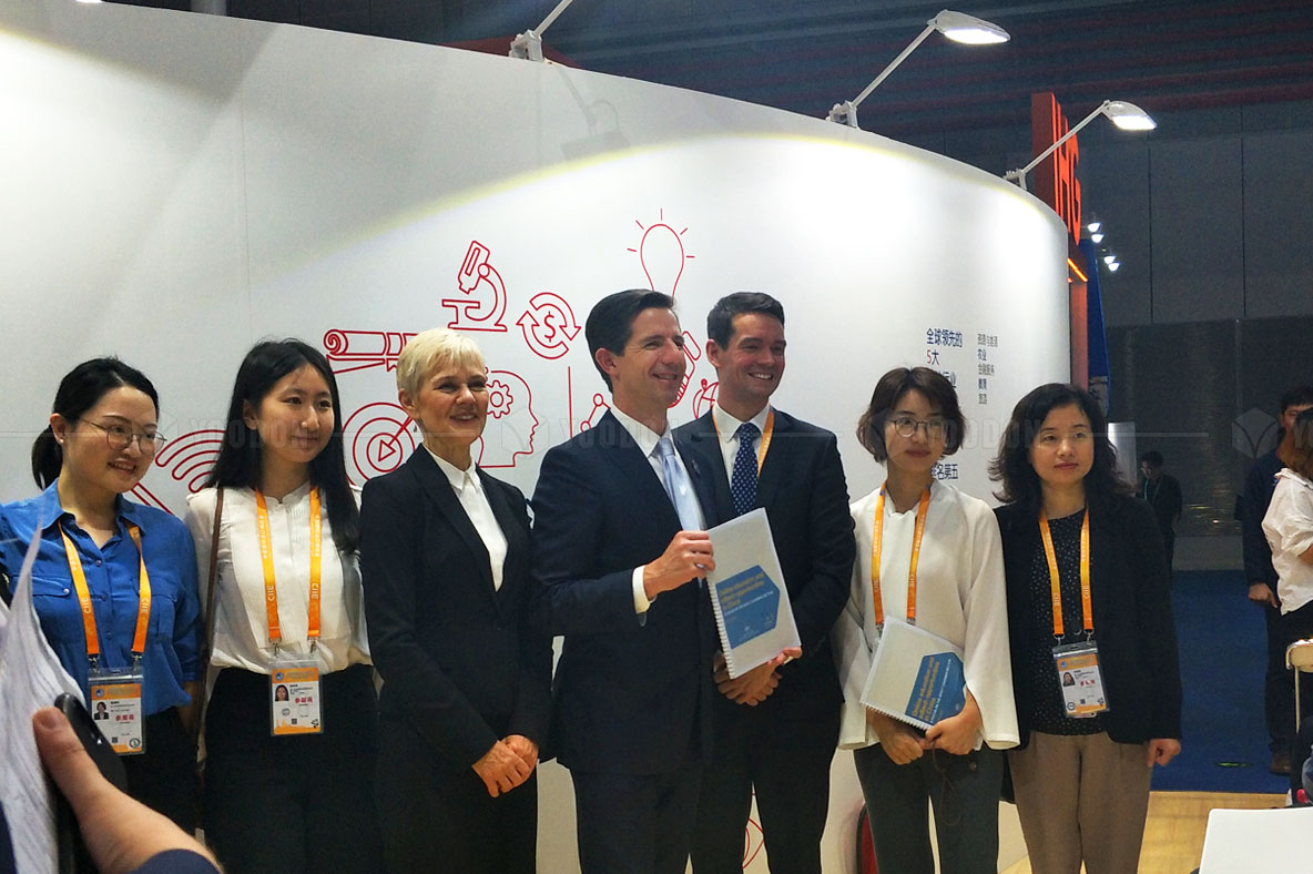 澳大利亞館-澳大利亞貿易、旅游和投資部部長西蒙伯明翰先生參觀了澳大利亞企業館并體驗了精心設計和準備的互動活動,給予我們高度贊揚和認可。