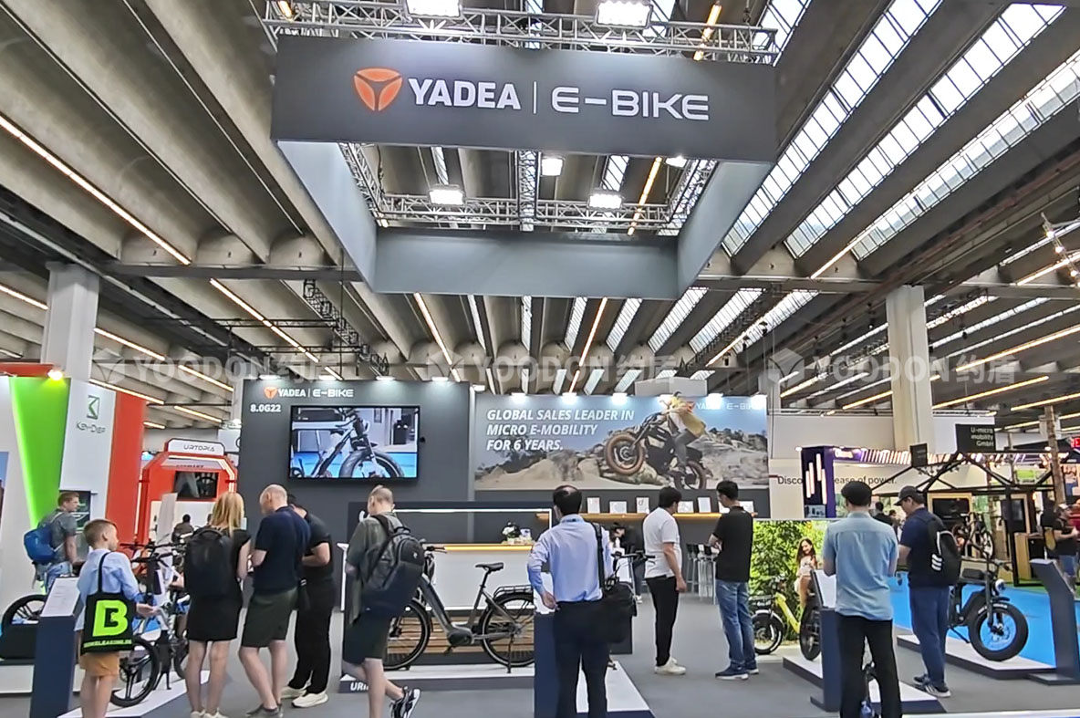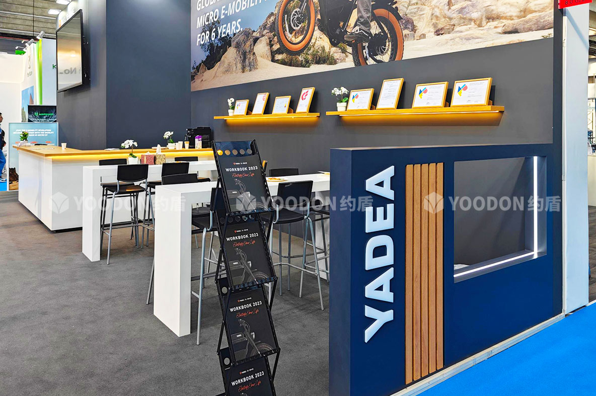 「約盾展覽」德國展會搭建-雅迪簡約時尚國際范|亮相2023德國法蘭克福EUROBIKE展!